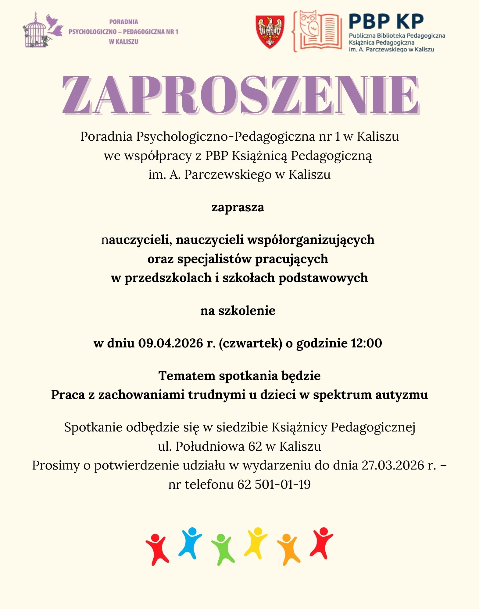 15.04.2026 r. | Zachowania trudne ucznia w spektrum autyzmu – jak zapobiegać i wspierać. | ||