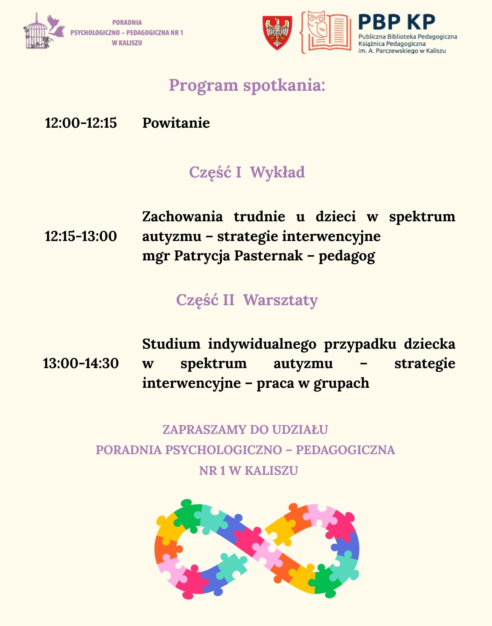 15.04.2026 r. | Zachowania trudne ucznia w spektrum autyzmu – jak zapobiegać i wspierać. | ||
